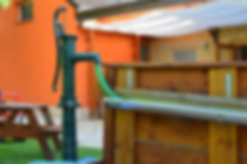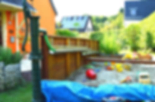 Der großzügige Außenbereich lädt zum Entdecken und Spielen ein.